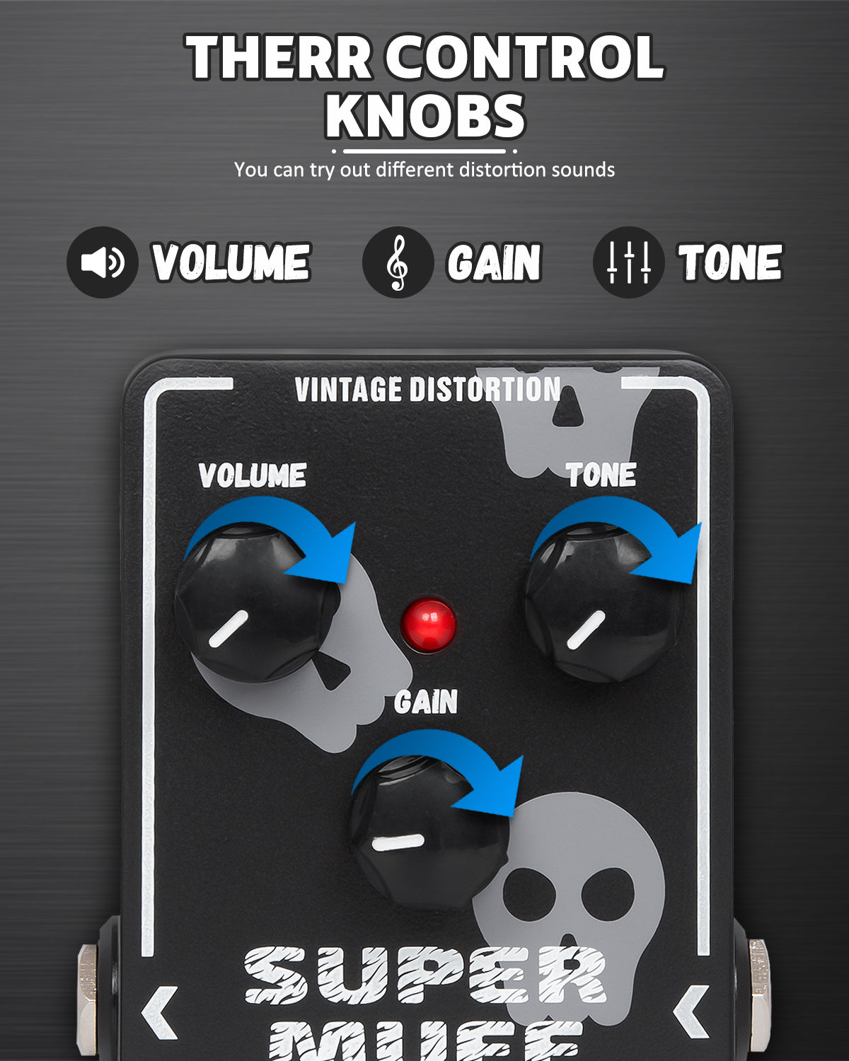 - High-Gain Distortion: Offers a wide range of distortion gain adjustments, suitable for various metal and rock styles. The Vol/GAIN/TONE knobs individually control the distortion's intensity and tonal characteristics.