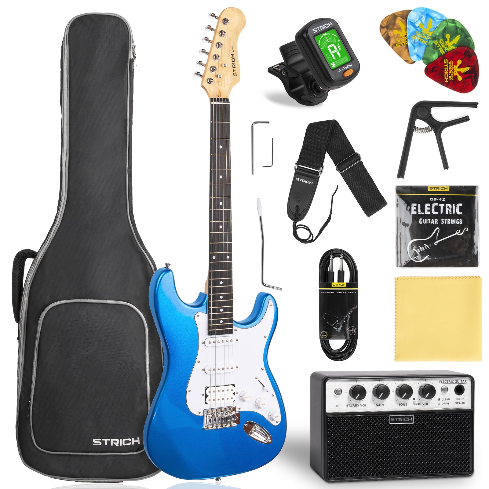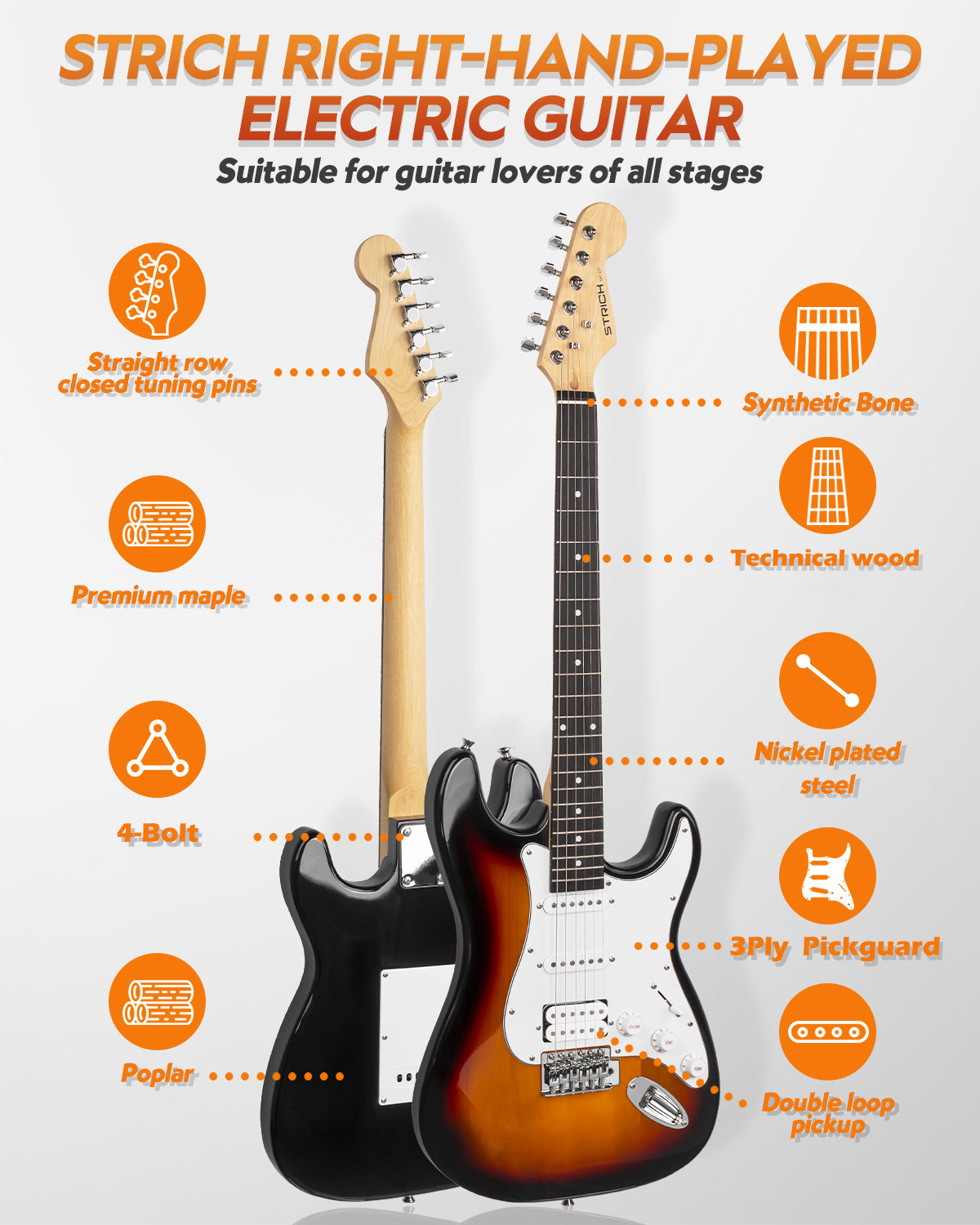 STRICH Electric Guitar Beginner Kit, Solid Body 39" Full Size Electric Guitar HSS Pick Up for Starter, with 10W Amp, Bag, Digital Tuner, Capo, Strap, String,Cable, Picks, SST-S20 Sunburst