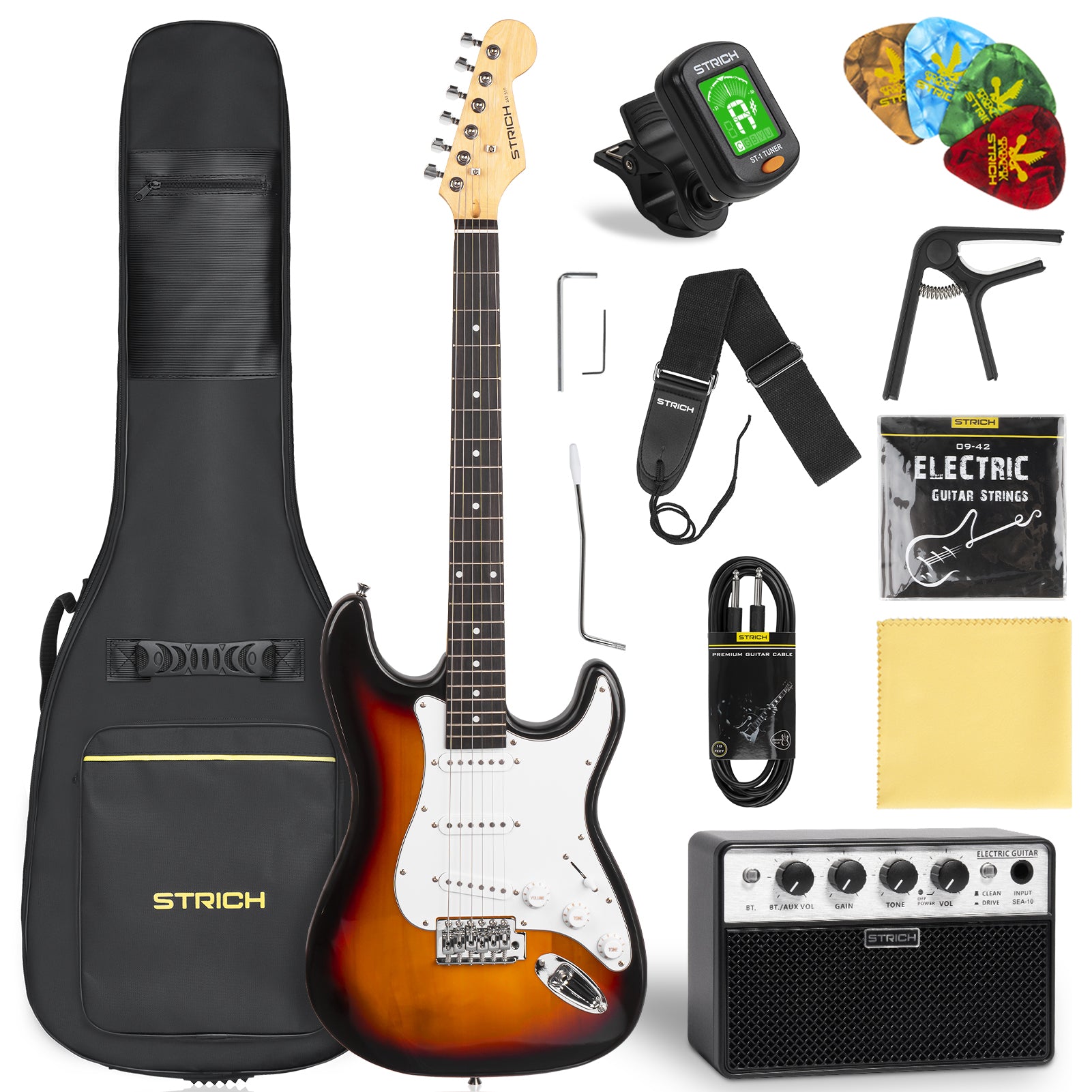 STRICH Electric Guitar Beginner Kit, Solid Body 39" Full Size Electric Guitar SSS Pick Up for Starter, with 10W Amp, Bag, Digital Tuner, Capo, Strap, String,Cable, Picks, SST-S10 Sunburst