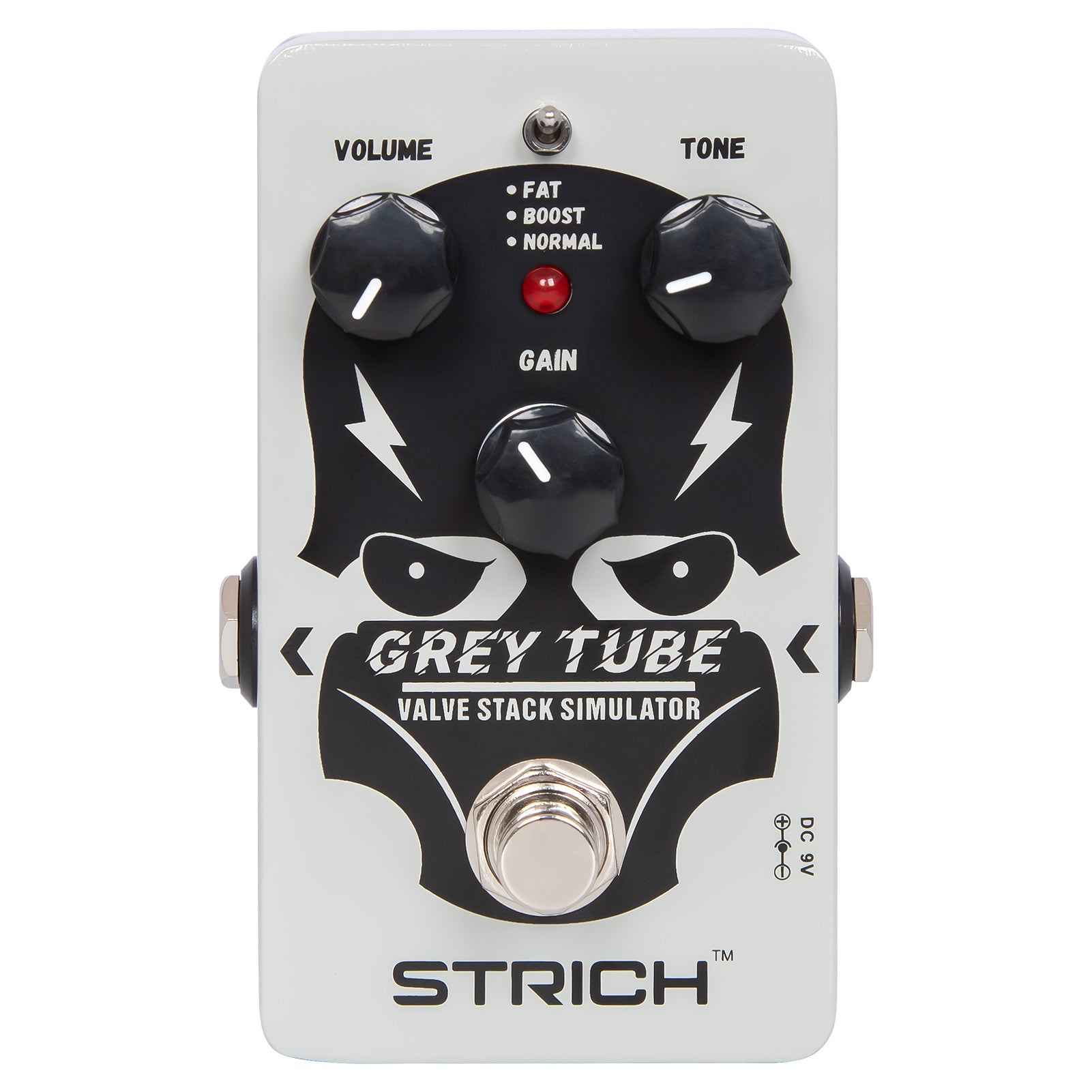 STRICH GREY TUBE Distortion Guitar Pedal, Distortion 3 Modes Fat, Boost, Normal Classic Crunch 80s Metal/Nu Metal, True Bypass for Electric Guitar, White