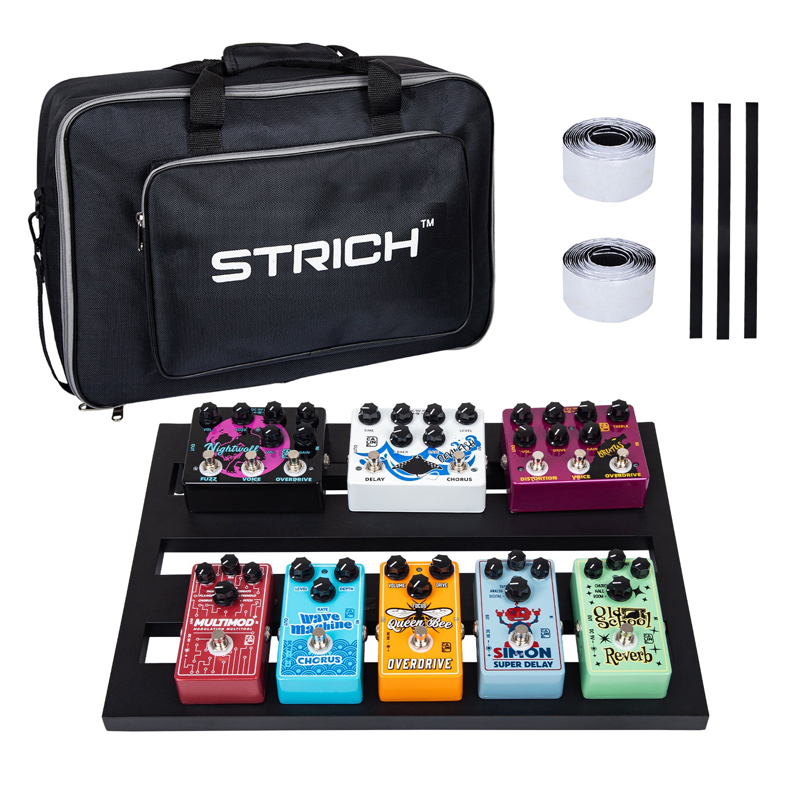 - 【Organized Tone Control】 STRICH guitar pedal board allows you to neatly organize your stompboxes and pedals in one place for easy access and control over your tone. Whether you use overdrives, distortions, delays, reverbs, choruses, or flangers, our pedal boards let you access a whole range of effects in one convenient setup.