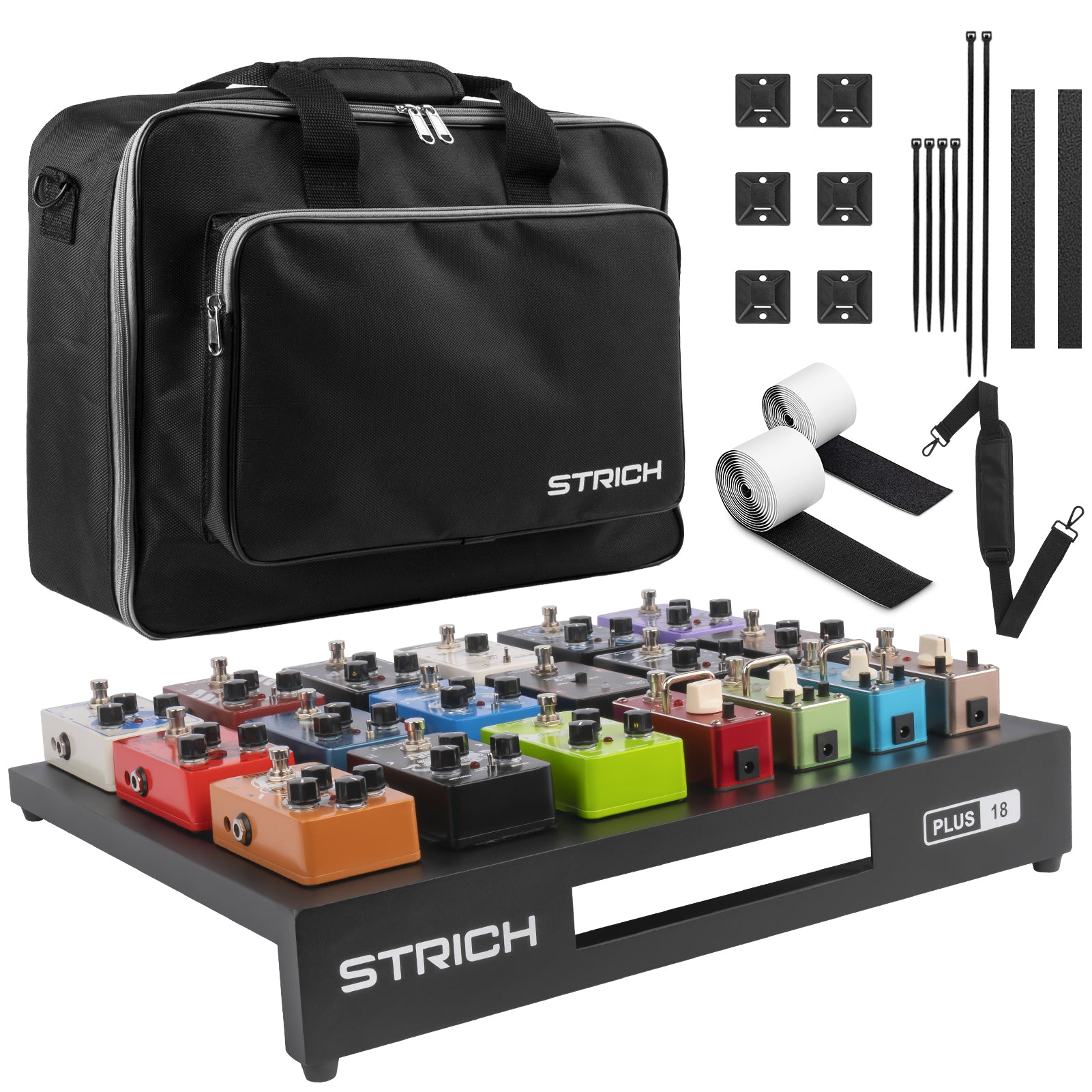 STRICH Guitar Pedal Board Extra Large Size, Aircraft Grade Aluminum 2.6lb Lightweight Pedalboard 18'' x 14.6'' Effect Pedals board with Carry Bag, PLUS 18 (Angled)